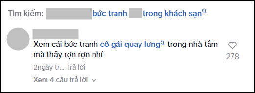 Bên cạnh đó, các từ khóa liên quan như “bức tranh cô gái quay lưng”, “bức tranh cô gái trong nhà tắm”,... cũng đang lọt top tìm kiếm phổ biến. Nhiều người tìm lại các video, bài đăng check-in tại khách sạn để xem bức tranh và bàn tán rôm rả.