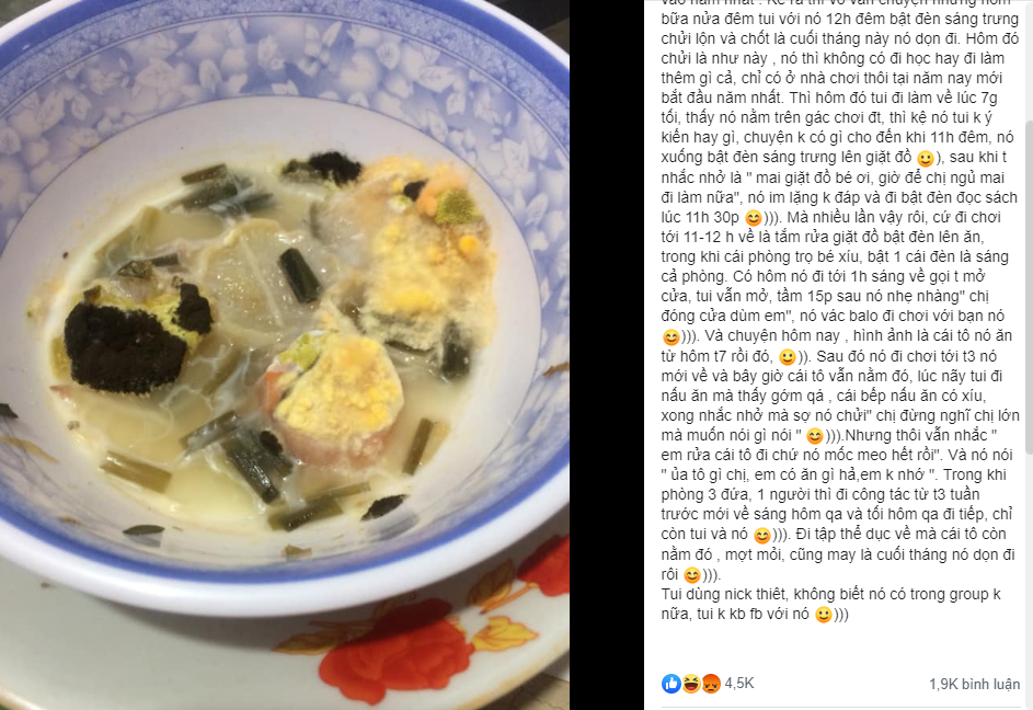 Những câu chuyện về "cao thủ ở bẩn", hay ý thức kém khi sống cùng phòng với bạn bè đã không còn quá hiếm gặp nữa. Mới đây, bài viết của cô gái chia sẻ trên mạng xã hội lại làm dậy sóng câu chuyện muôn thuở đó.