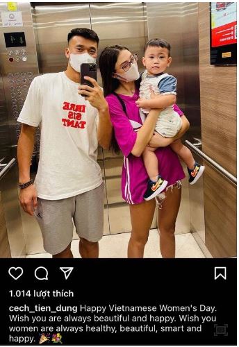 "Happy Vietnamese Women's Day. Wish you are always beautiful and happy. Wish you women are always healthy, beautiful, smart and happy" (Tạm dịch: Chúc mừng ngày Phụ nữ Việt Nam. Chúc em luôn xinh đẹp và hạnh phúc. Chúc các chị em phụ nữ luôn khỏe mạnh, xinh đẹp, thông minh và hạnh phúc), Bùi Tiến Dũng viết trên Instagram cá nhân.