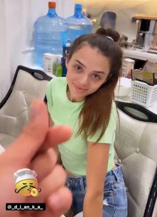Hình ảnh này khác hẳn lúc nàng WAG ở nhà. Trong video khi Dianka tự tay vào bếp nấu ăn cho tiến Dũng, cô buộc tạm mái tóc dài lên cao, mặt mộc xinh đẹp nhưng có phần thiếu sức sống. Đôi mắt Dianka thâm quầng. Tình trạng này là bởi cô phải thường xuyên thức khuya chăm con bị ốm. Sau khi bé Danil khỏi ốm, Dianka đã nhanh chóng lấy lại trạng thái tươi tắn, trẻ trung, đầy năng lượng trong ảnh chụp ở phòng gym.