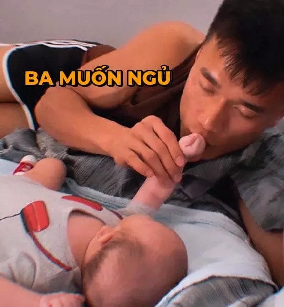 Dù dùng đủ mọi cách dỗ dành, cậu nhóc vẫn không chịu ngủ nên thủ thành gốc Thanh Hóa đành ngậm ngùi nhắn nhủ con: "Con nằm đây chơi để trông bố ngủ nhé".