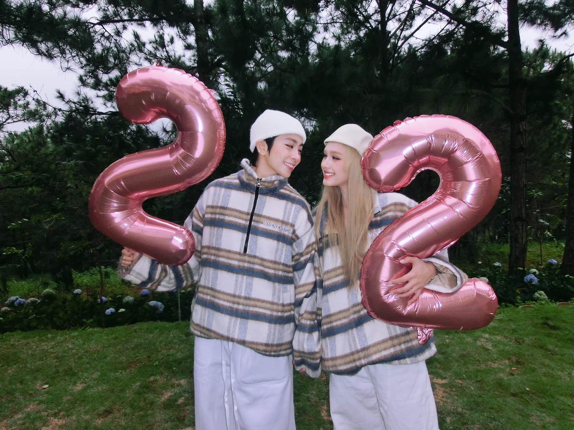 Được biết, bữa tiệc sinh nhật có sự xuất hiện của vài người bạn thân thiết với cặp đôi như MisThy, Ngọc Trinh... Cặp đôi đều diện trang phục màu trắng, đặc biệt là Xoài Non diện chiếc váy hở vai như công chúa. Trong một khoảnh khắc, Xoài Non bỗng nghiêng người và được Gil Lê hôn vào mũi.