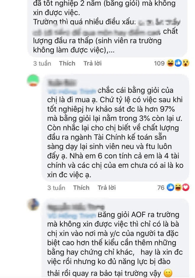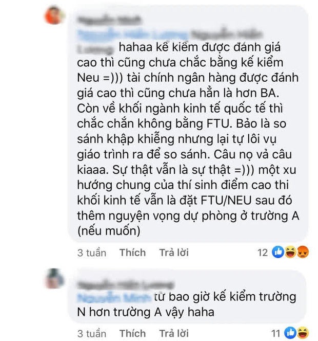 Bài viết của nam giáo viên này đã gây ra tranh cãi lớn trong cộng đồng sinh viên theo học ngành Kinh tế. Theo như ý của giáo viên: Điểm ở mức 24 - 26 thì nên theo Học viện Tài chính, còn trên 28 điểm thì đi theo NEU hoặc FTU.