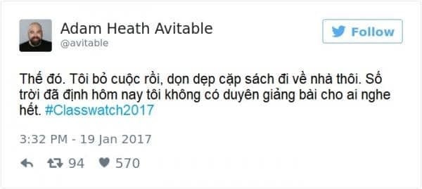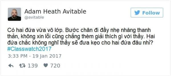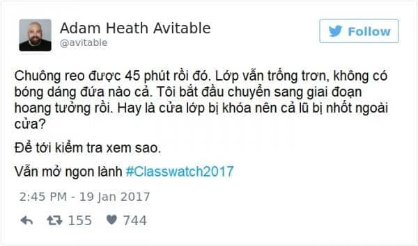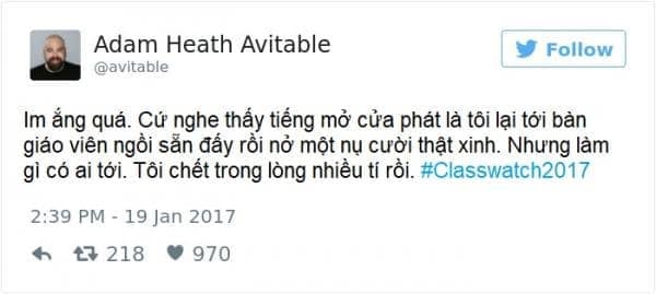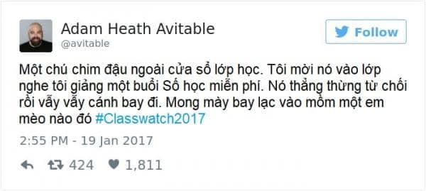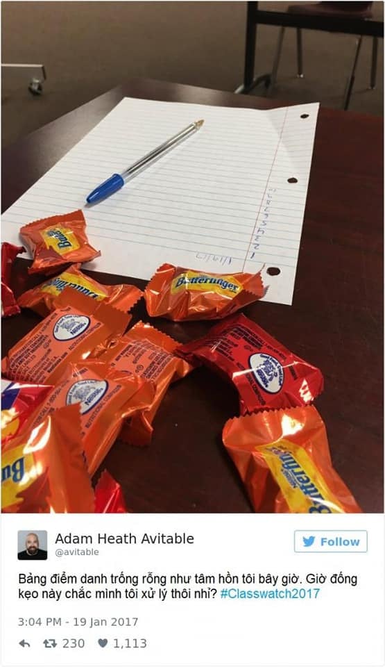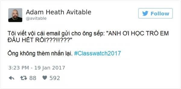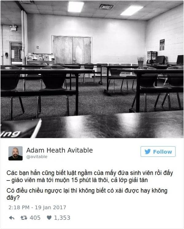 Vẫn là thầy Adam gào thét trong tuyệt vọng, còn những bài đăng trên Twitter thì ngày càng nhiều lượt like. Nếu giờ phút ấy, thầy Adam phát hiện sinh viên nào thả tim bài của thầy mà cũng chịu đến lớp, ắt hẳn thầy sẽ cho ngay một điểm 0!