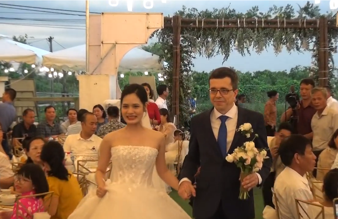 Trong giờ phút hạnh phúc nhất, trước quan viên hai họ, chú rể Loic phát biểu: "Lời đầu tiên cho phép Loic và Tuệ Lâm gửi lời chào và lời cảm ơn chân thành nhất đến các quý vị ở đây. Tuệ Lâm có nói con người Ninh Giang (Hải Dương) rất thân thiện và ấm áp. Hôm nay tôi đã thấy điều đó. Tôi rất biết ơn gia đình Tuệ Lâm, đặc biệt là mẹ cô ấy đã chào đón tôi đến với gia đình và mảnh đất Ninh Giang này. Chúng tôi rất hân hạnh được tổ chức đám cưới ở đây và cảm ơn mọi người có mặt ngày hôm nay".