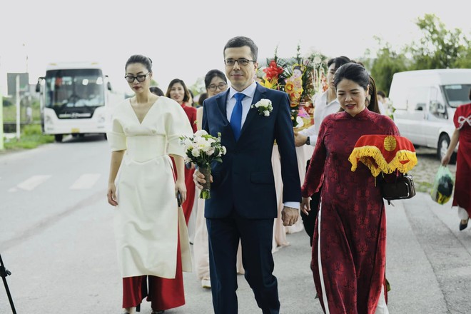 Có lẽ chú rể Loic cũng rất thích thú với văn hóa đám cưới truyền thống ở Việt Nam.