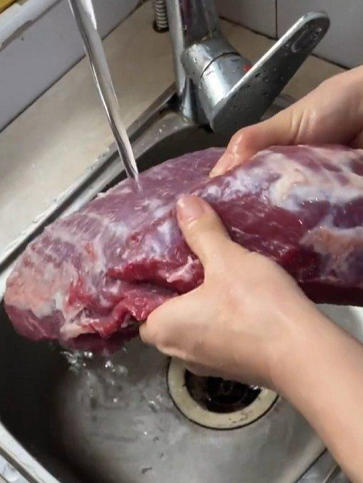 3. Rửa thịt sống trực tiếp dưới vòi nước