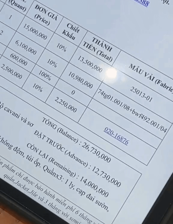 Cụ thể, vợ chồng ca nương Kiều Anh đã đi mua vest. Với một đại gia như Văn Quỳnh, vest của anh cũng phải là hàng tuyển. Số tiền lúc chốt đơn là khoảng 26,7 triệu đồng. Sau đó, cặp đôi liền tới một cửa hàng để bọc lại sofa. Chiếc bill này là cao thứ nhì trong tất cả khi hai vợ chồng đại gia phải chi đến 134,7 triệu cho bộ sofa nhà mình.