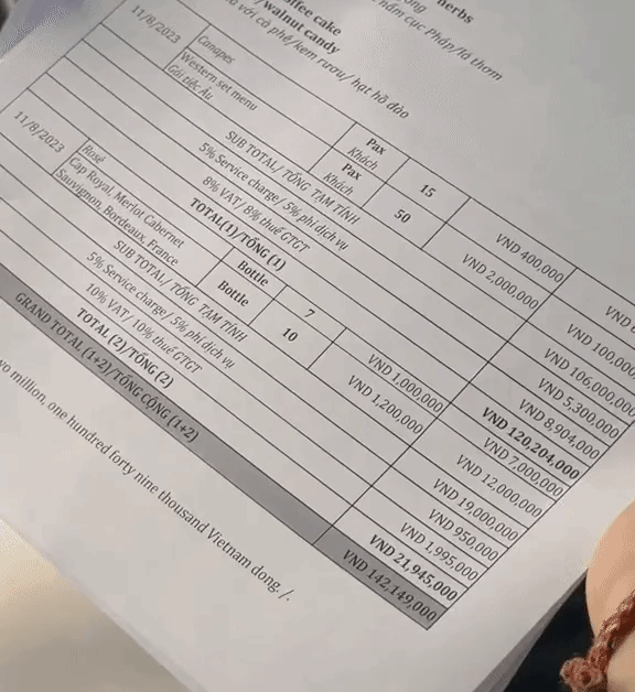 Tiếp đến, cặp đôi lại đi mua máy tính và điện thoại. Cả hai chốt đơn hai sản phẩm mới nhất hiện nay của Samsung với số tiền là khoảng 41,9 triệu. Kiều Anh - Văn Quỳnh cũng thanh toán tiền đặt tiệc cho lễ kỷ niệm 10 năm ngày cưới, với chiếc bill lên đến 142 triệu đồng. Cuối cùng là một bữa ăn tối cùng đại gia đình, tổng chi phí 18,3 triệu đồng.