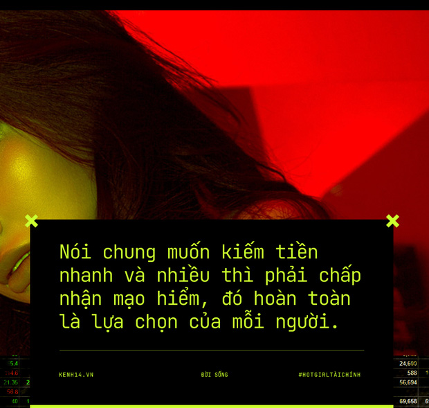 Về xu hướng, những hot girl tài chính này cũng giống như chuyển đổi cho hợp thời, vừa có tiền vừa có 1 cái mác sang chảnh hơn. Mình thấy hot girl tài chính là sự kết hợp hoàn hảo của tài năng PR sàn và nâng tầm bản thân của họ. Và cuối cùng, người hứng chịu hậu quả nặng nề, có khi còn tiền mất tật mang vẫn chỉ có 'gà' mà thôi" - H.T (29 tuổi).