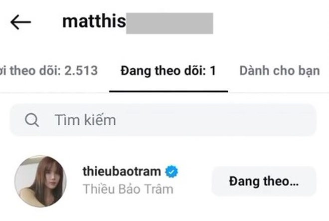 Ngoài ra Matthis đã âm thầm nhập hội “follow chỉ mình em” khi theo dõi duy nhất Thiều Bảo Trâm trên Instagram. Đồng thời anh chàng còn thoải mái tương tác với chị gái của người yêu - Thiều Bảo Trang, cho thấy mối quan hệ thân thiết của 2 bên.