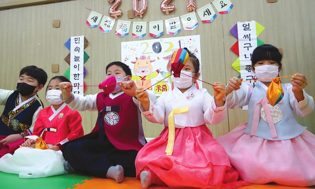 Tết Âm lịch của người Hàn còn gọi là Seollal. Dù không quan trọng bằng Tết Trung thu nhưng tại xứ sở kim chi vẫn đón Tết long trọng và hội học sinh vẫn được nghỉ học dài ngày, dù không lâu như tại Việt Nam. Vào ngày Tết, học sinh Hàn Quốc mặc trang phục truyền thống hanbok, thực hiện các nghi lễ cúng bái tỏ lòng biết ơn tổ tiên, chơi trò chơi dân gian, ăn các món ăn truyền thống và gặp gỡ mọi người. Có một nghi thức thú vị là trước thời khắc giao thừa, người Hàn sẽ tắm nước nóng để gột rửa đi hết những điều không may mắn trong năm cũ.