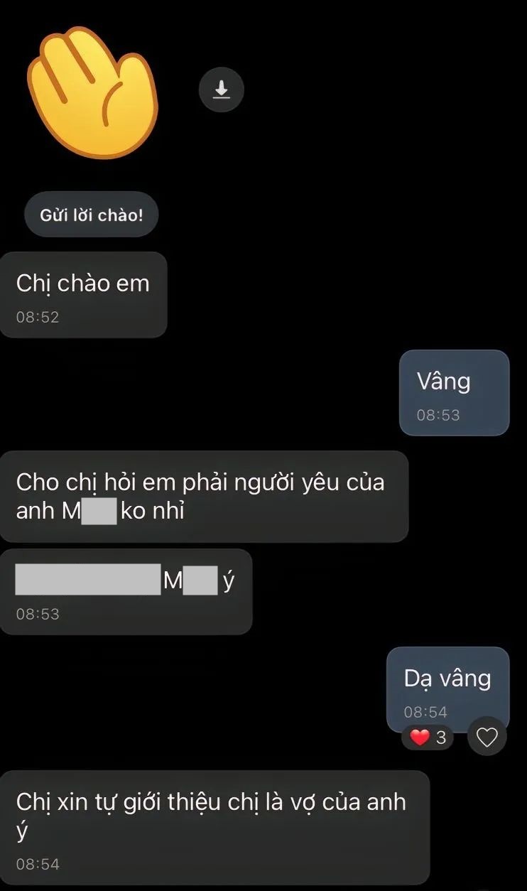 “Em có phải người yêu anh M. không? Xin tự giới thiệu chị là vợ anh ý”