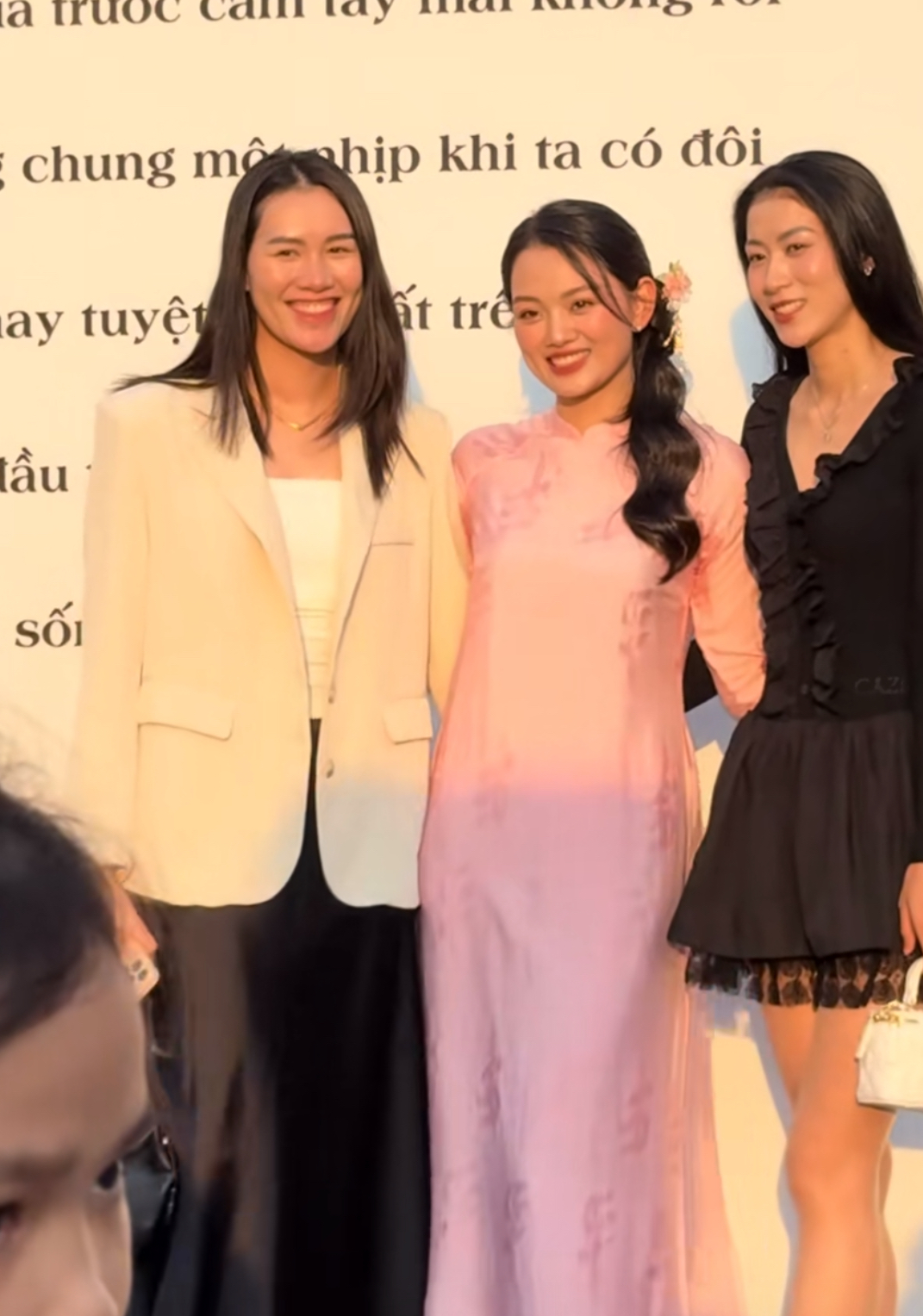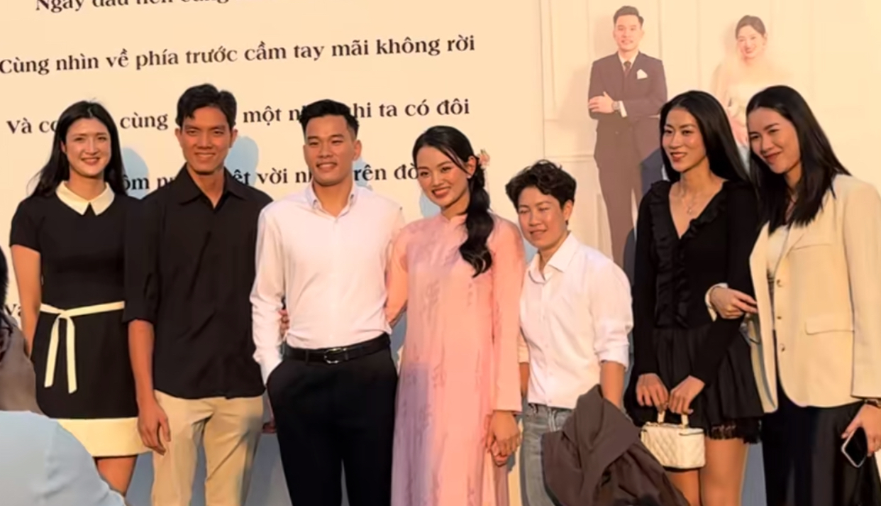 Nhan sắc và vóc dáng của các nữ vận động viên lập tức gây chú hút, từ Kiều Trinh, Nguyễn Trinh, Lưu Huệ đều diện váy nữ tính và khoe đôi chân dài thẳng tắp. Dàn mỹ nữ bóng chuyền xinh đẹp nhưng vẫn chọn những bộ đồ đơn giản để không chiếm spotlight trong ngày cưới của đồng đội.