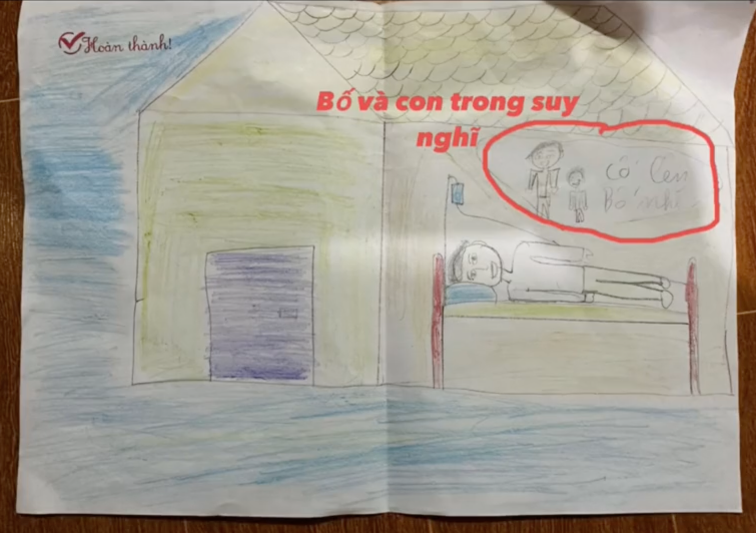 Các con thường chăm bố khi mẹ đi làm, hoặc chăm chỉ dọn dẹp nhà cửa, nấu ăn cho mẹ. Trong một lần lên sóng ở Đài Phát thanh - Truyền hình Thái Nguyên, cậu con trai đã tâm sự về ước mong của mình: "Con rất buồn khi các bạn khác được bố đưa đi học. Niềm mong ước lớn nhất của con là bố mau khoẻ, đưa con đi học". Sau đó, cậu bé đã hôn bố và nói: "Bố ơi, nhanh khoẻ để đưa con đi học nhá".