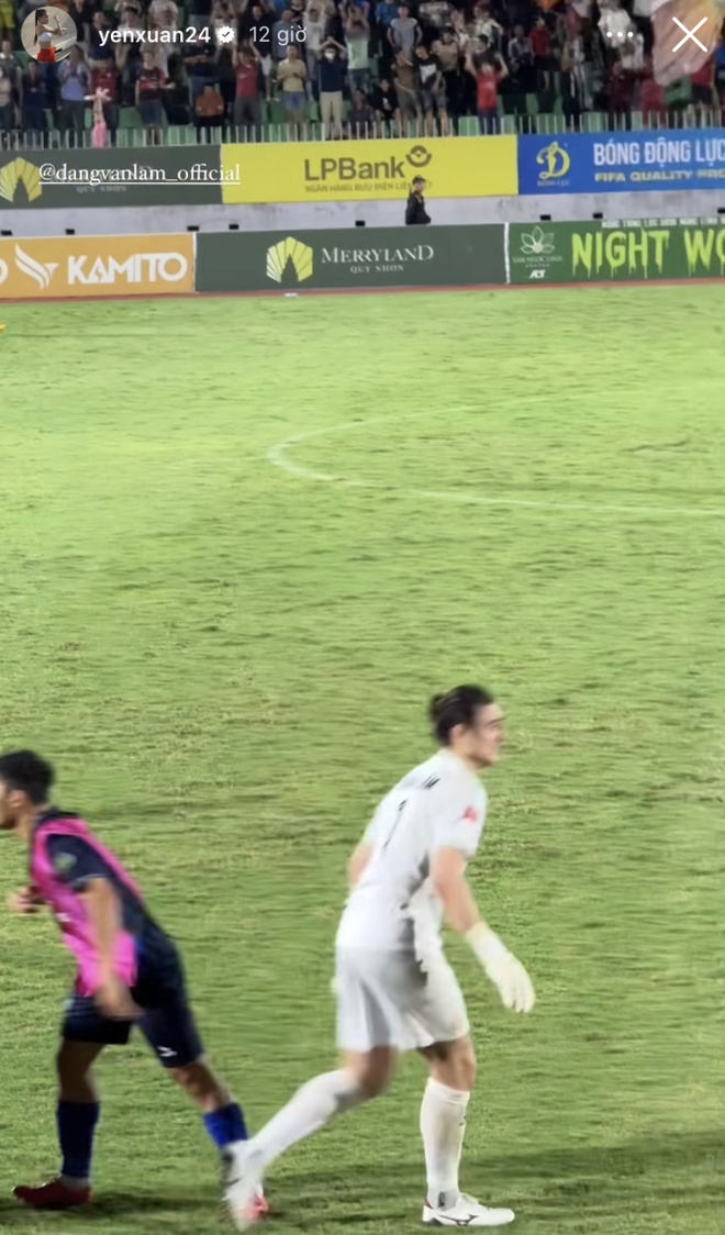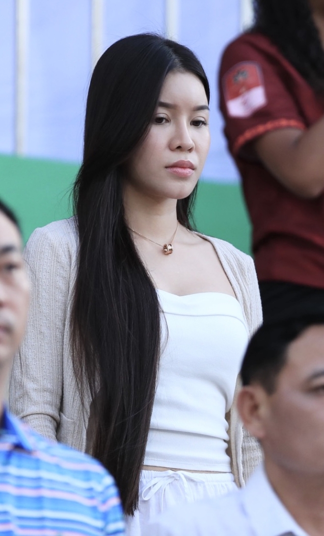 CLB Bình Định có trận đấu tiếp đón CLB Hà Nội trên sân Quy Nhơn thuộc vòng 24 V.League 2023/24. Như thường lệ, nàng WAG Bùi Thị Yến Xuân lại có mặt trên khán đài để cổ vũ bạn trai Đặng Văn Lâm thi đấu. Dù không ăn mặc quá nổi bật nhưng Yến Xuân vẫn sáng trên khán đài và lập tức lọt vào ống kính của giới truyền thông.