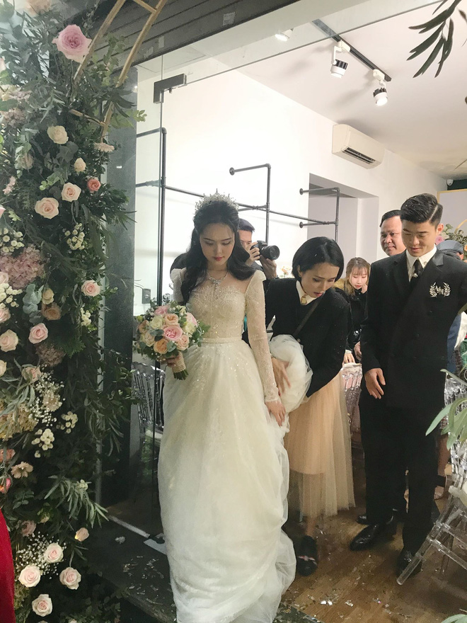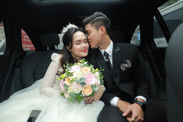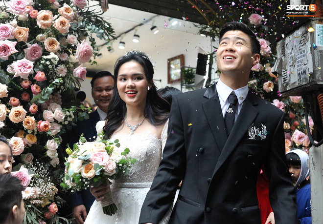 Mái tóc xoăn nhẹ, lối trang điểm nhẹ nhàng tươi tắn, vợ mới cưới của cầu thủ Duy Mạnh đã nhận về vô số lời khen của mọi người vì nhan sắc quá đỗi xinh đẹp. Từ lúc nắm tay Duy Mạnh ra khỏi nhà đến lúc yên vị trên xe bông, Quỳnh Anh cực kì rạng rỡ. Chú rể thì khỏi nói, cứ phải gọi là tươi roi rói.