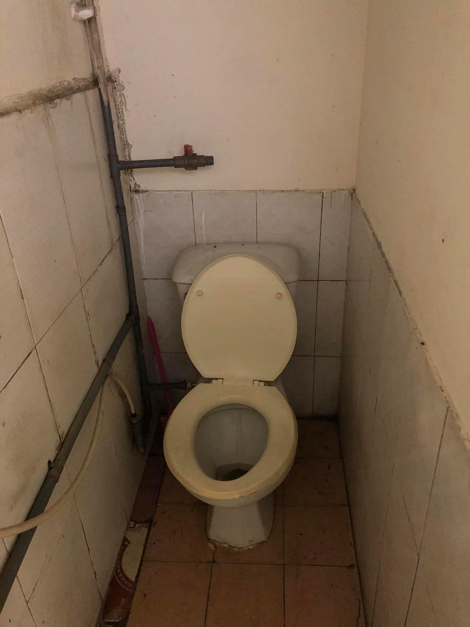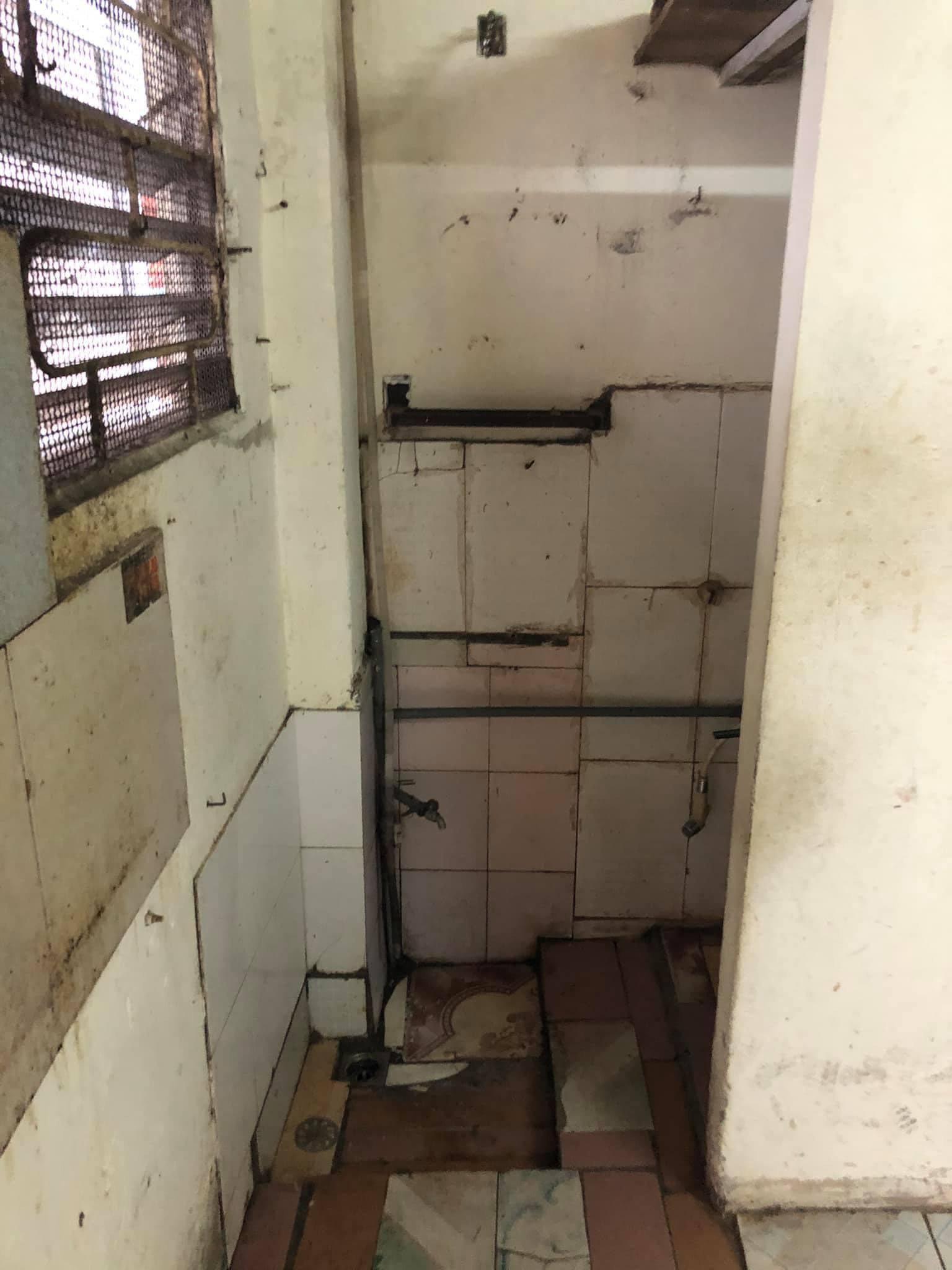 Lớp tường và gạch đã bong tróc, xỉn màu khiến căn nhà như bị bỏ hoang hàng chục năm. Tường dính đầy mạng nhện, còn nhà tắm cũng chẳng khá khẩm hơn khi không có cả cửa ra vào. Thậm chí, lớp tường ở phòng ngủ còn bị bong tróc như sắp rơi từ trên cao xuống.