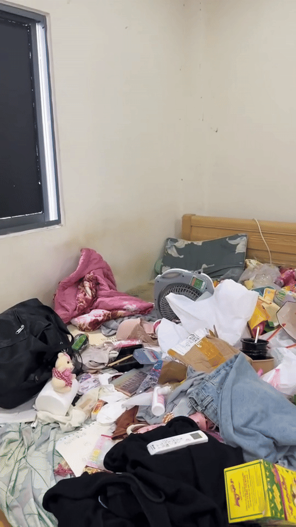 Có thể thấy, căn phòng bị bao phủ khắp nơi đều là rác thải, quần áo, bát đũa bẩn, chai lọ, đồ ăn, hộp nhựa chất đống trong nhà. Trong phòng dường như không có chỗ bước chân vì rác vương khắp nơi. Chiếc giường để ngủ nghỉ thì được nữ sinh này "tận dụng" làm chỗ ăn uống, xả rác thải luôn. Nhìn cảnh tượng này ai cũng lắc đầu ngao ngán.