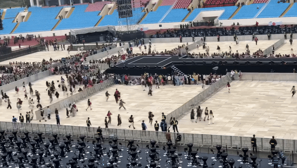 Theo các clip, ngay sau khi mở rào, người hâm mộ liền chạy thật nhanh vào các khu vực gần sân khấu. Cảnh tượng hàng trăm người chạy đua khiến cư dân mạng, đặc biệt là những người chưa quen đi đu idol không khỏi bất ngờ.