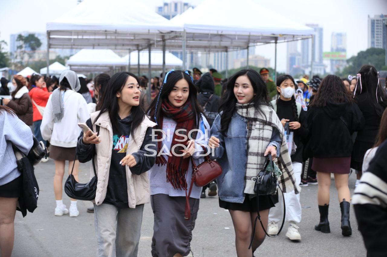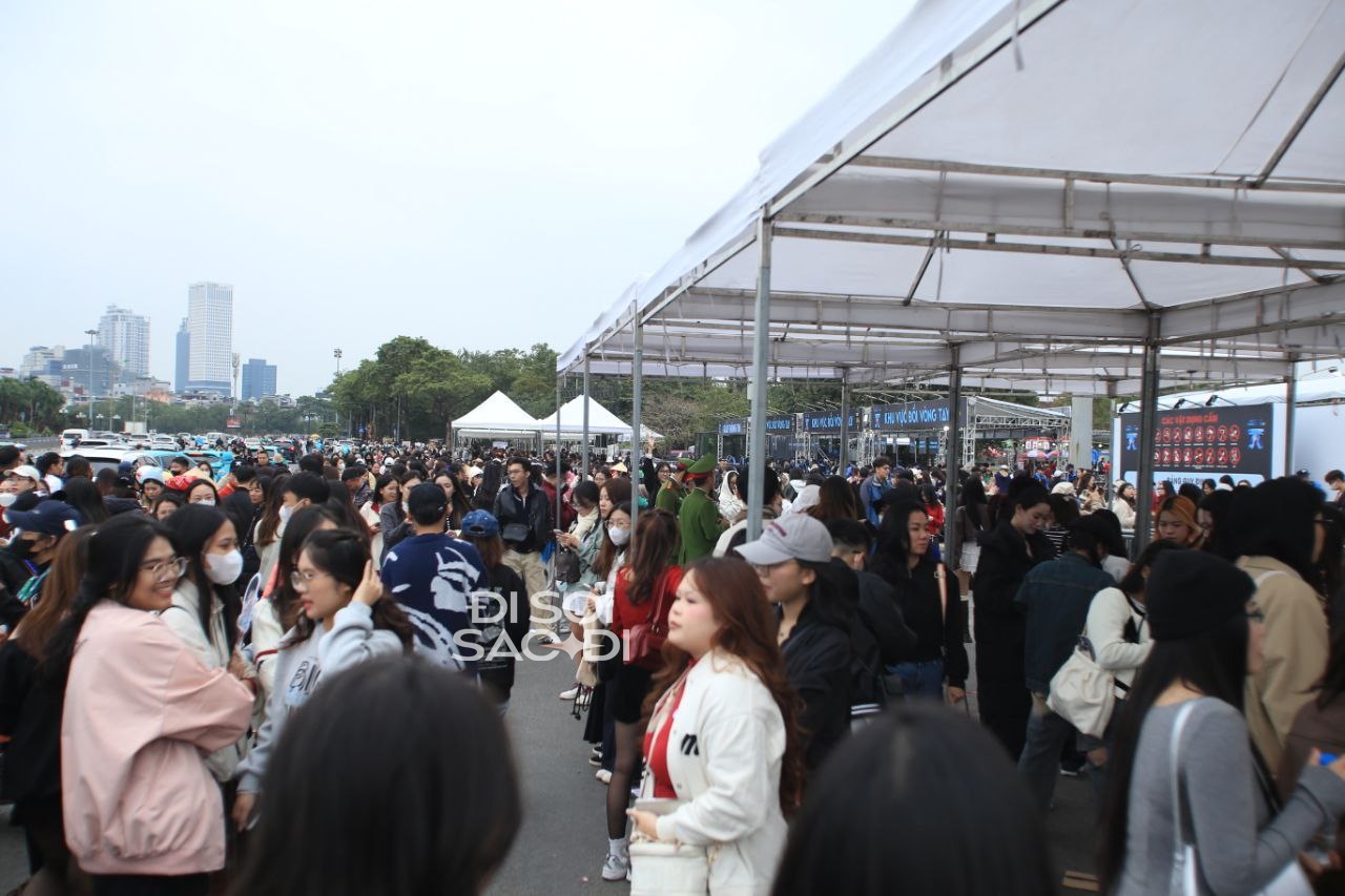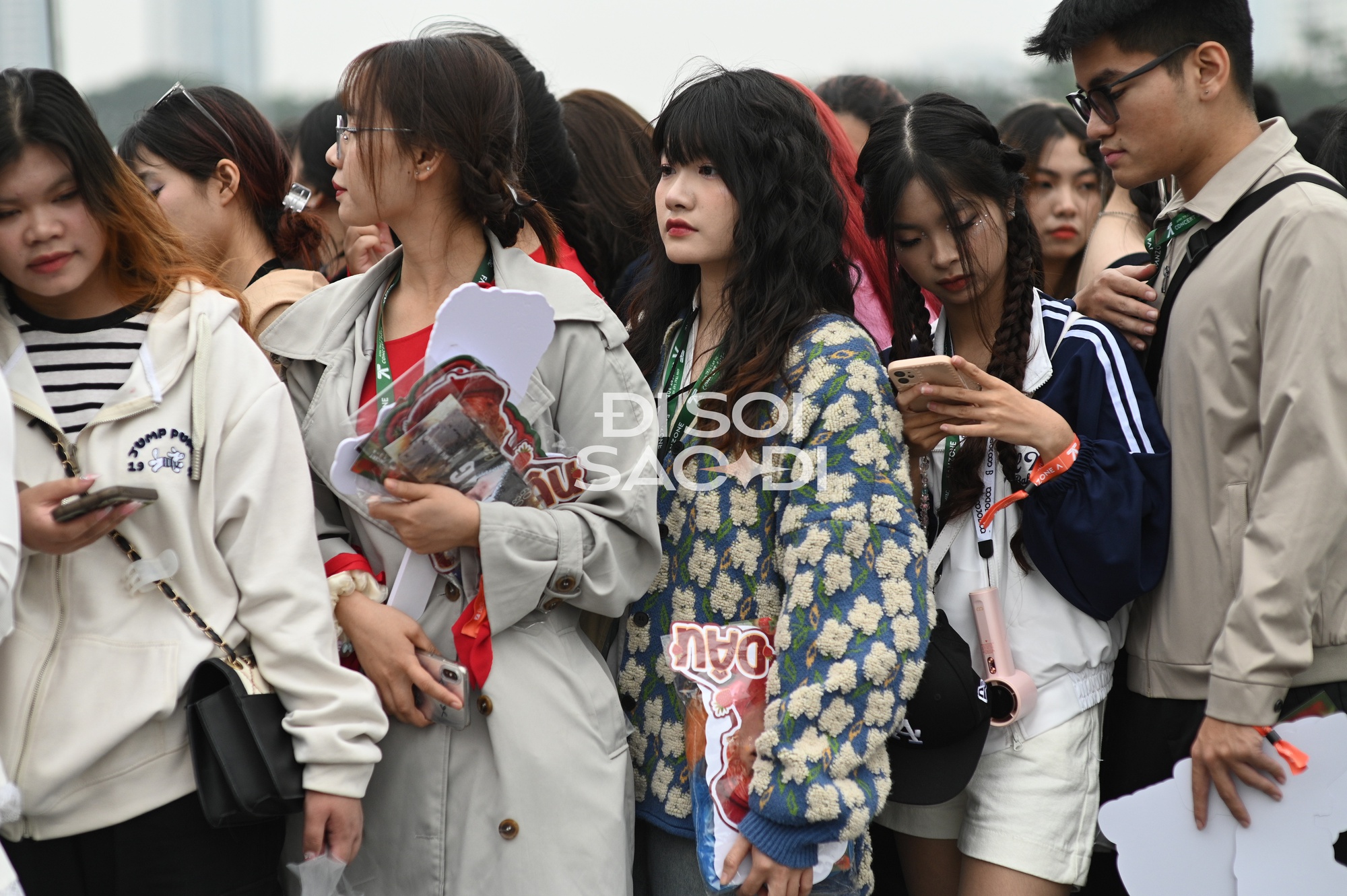 Trước đó, từ khoảng 4 - 5h sáng ngày 7/12, nhiều bạn trẻ đã có mặt bên ngoài SVĐ Mỹ Đình xếp hàng dài tạo nên cảnh tượng hiếm có. Đến khoảng 11h cùng ngày, hàng nghìn người đã đổ về Mỹ Đình để chuẩn bị check-in. Việc chuẩn bị đi từ sáng sớm và chờ đợi quá lâu khiến nhiều người mệt mỏi, phải ngồi bệt xuống.