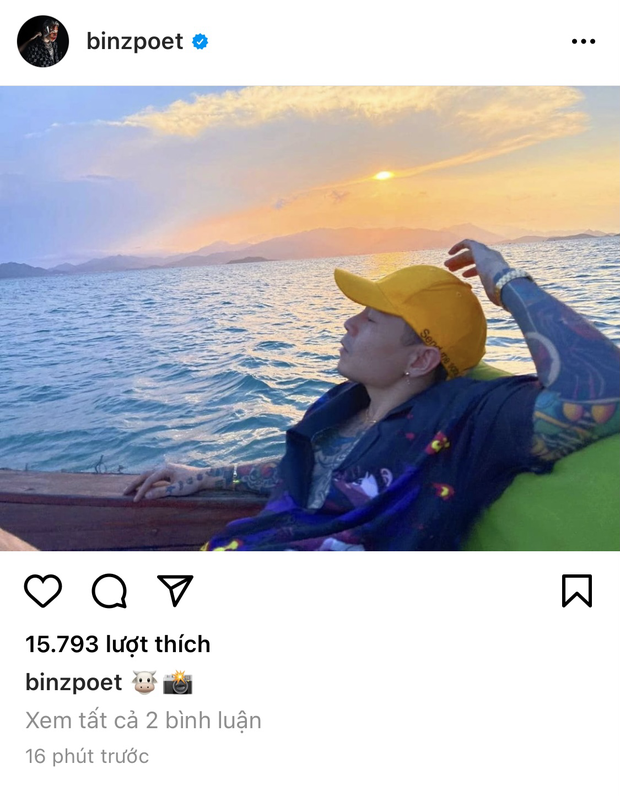 Theo đó, nam rapper không hề ghi tên ai cụ thể là người chụp bức ảnh cho mình nhưng ở caption thì anh dùng emoji hình chú trâu và chiếc máy ảnh. Nếu ai theo dõi cả Binz lẫn Châu Bùi thì đều sẽ nhận ra ngay rằng, đây là một emoji cũng thường xuyên được Châu Bùi sử dụng và chính trên bio của cô cũng có hình chú trâu. Vậy khác nào Binz thừa nhận bức ảnh này là "Châu chụp"?