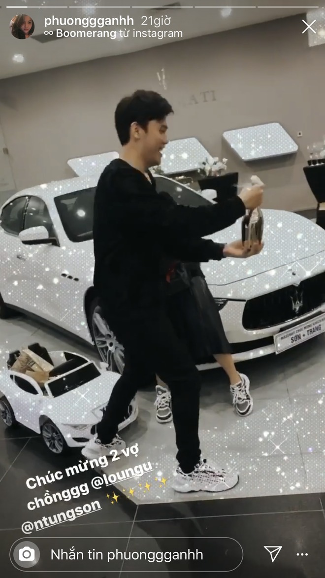 Ngoài căn nhà và xe hơi đã có từ trước, mới đây cặp đôi còn khiến dân tình ố á khi khoe chiếc xe hơi mới tậu thuộc dòng Ghibii của hãng Maserati, ước tính trị giá trong khoảng 4,7 tỷ đến 5,8 tỷ nhân dịp kỷ niệm 9 năm bên nhau.