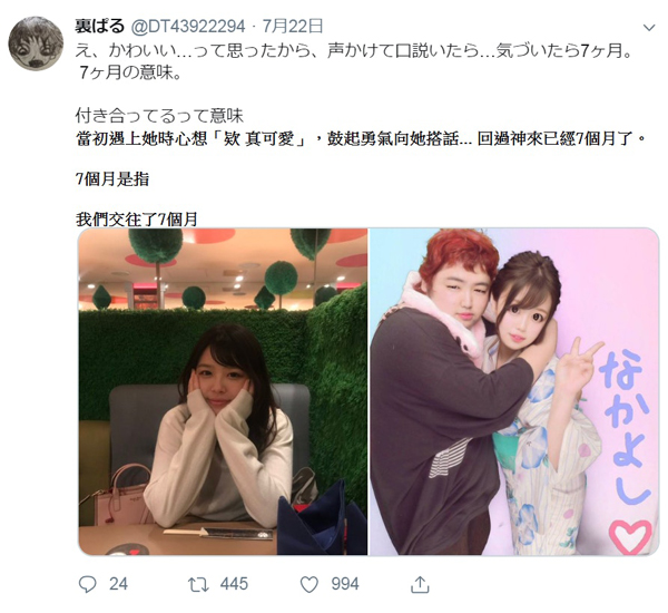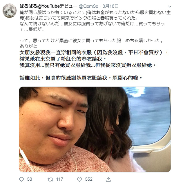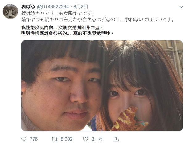 Chàng trai có tên là Paru Paru (24 tuổi, Nhật Bản) có ngoại hình kém sắc so với bạn gái. Hiện tại, anh đang trong tình trạng thất nghiệp và mọi chi phí hẹn hò đều do bạn gái chi trả. Điều khiến dân tình 'gato' là anh có bạn gái xinh đẹp và tình yêu của hai người đã kéo dài 7 tháng. Paru Paru thường đăng ảnh tình cảm với bạn gái trên Twitter khiến dân tình trầm trồ không ngớt.