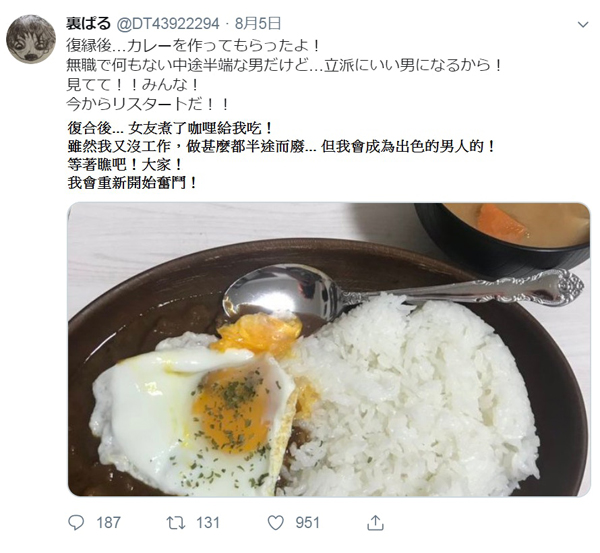 Mông lung như một trò đùa, Paru Paru đã thông báo cả hai đã tái hợp, đồng thời anh bày tỏ mong muốn trở thành bạn trai tốt của nàng. Nhưng thực tế, Paru Paru vẫn không có động lực và sự chăm chỉ để tìm việc. Nhiều dân mạng đã cảm thán, phải chăng kiếp trước Paru Paru đã giải cứu thế giới nên kiếp này anh mới may mắn gặp được cô bạn gái xinh đẹp, chịu chi và sẵn lòng tái hợp với anh.