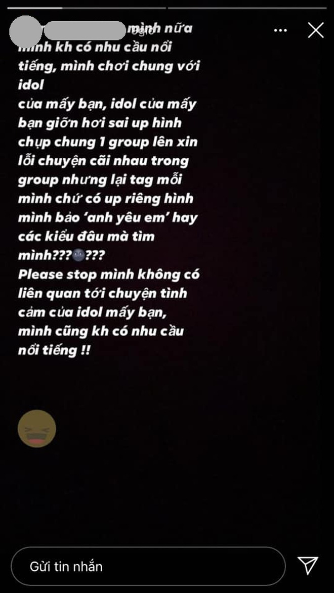 Cô nàng nhấn mạnh bản thân không có nhu cầu nổi và cũng đã có người yêu nên không muốn fan của couple này nhắn tin tấn công mình. Trước tình huống này, Kit cũng đã nhắn tin cho bạn mình đề nghị đăng ảnh với người yêu cho mọi người thấy.