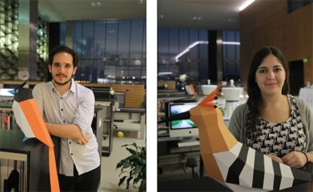 Juan và Carolina ban đầu tạo ra bản vẽ trên máy tính, rồi sau đó in, cắt ra và gấp dựa trên kỹ thuật origami nổi tiếng của Nhật Bản. |