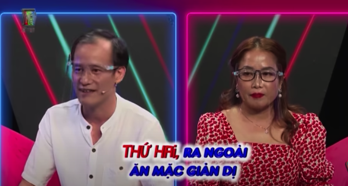 Khi anh Đường đọc cho chị Dung nghe một bài thơ có câu “anh không cần người yêu nhan sắc”, chị đáp lại hài hước: “Giờ mình lỡ đẹp rồi sao?”, khiến cả trường quay cười nghiêng ngả.