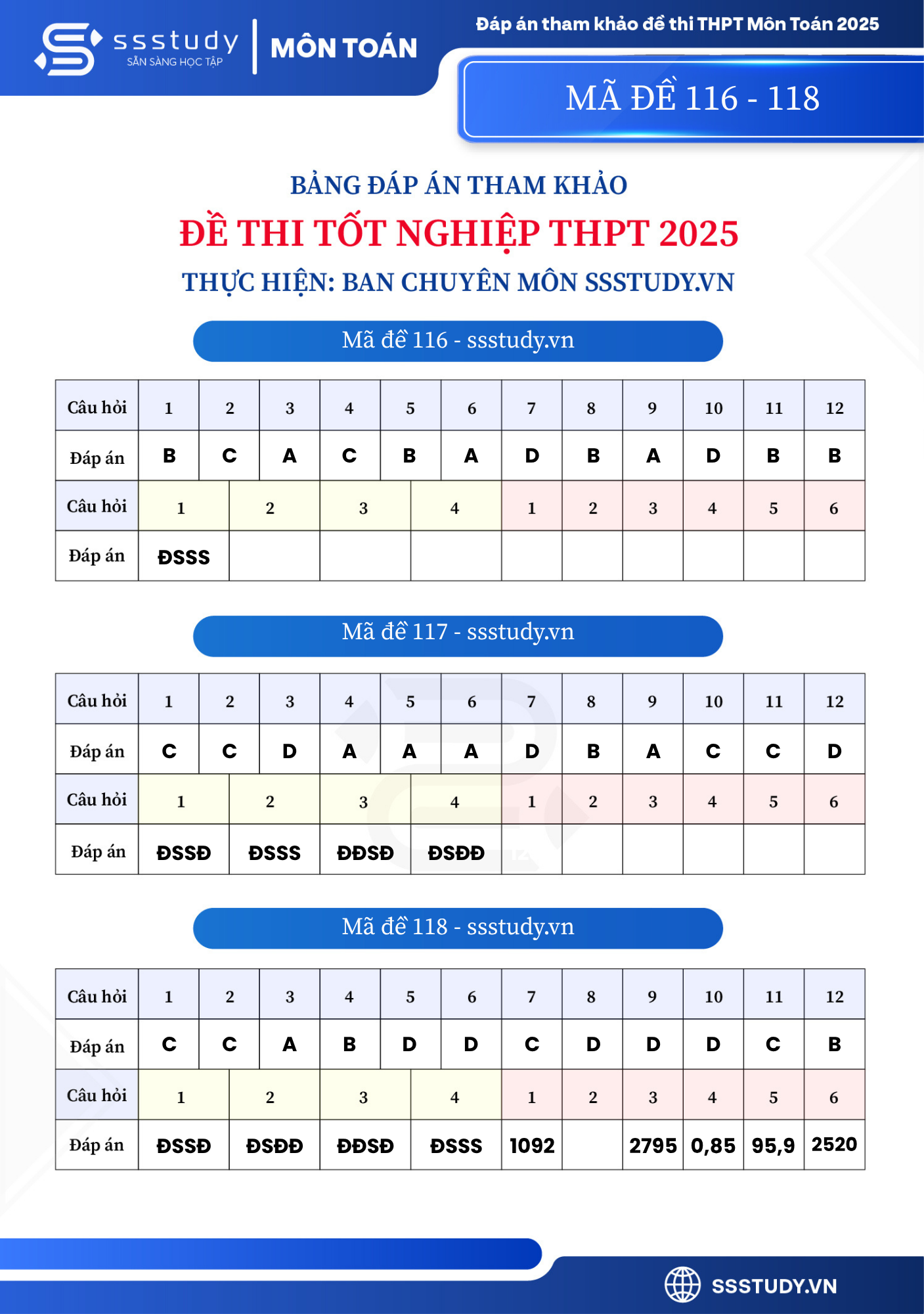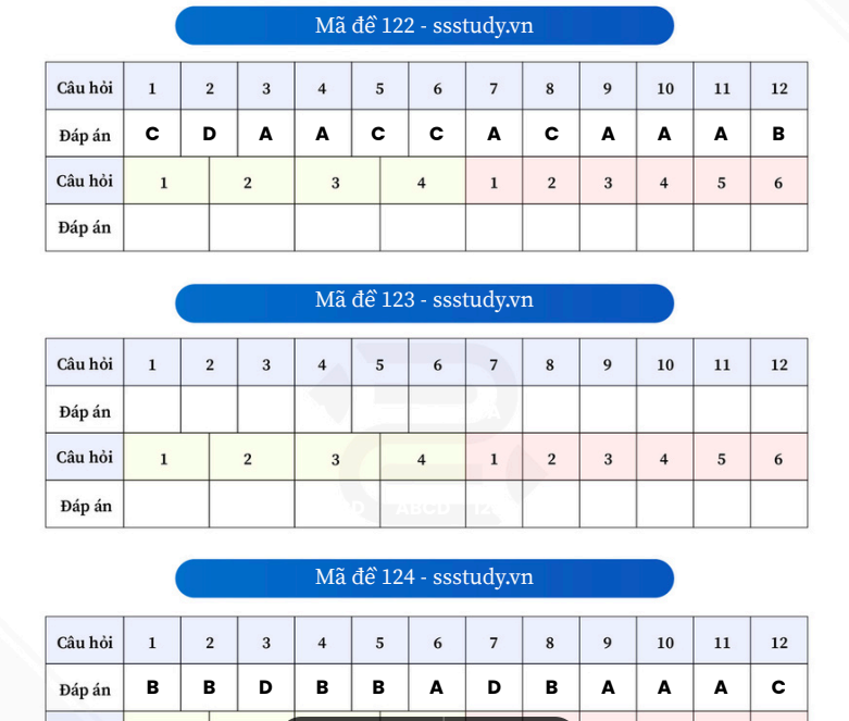 27/06/2025 00:26Cập nhật đáp án môn Toán thi tốt nghiệp THPT năm 2025 đầy đủ 24 mã đề