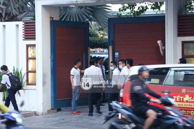 Ở phía đầu cầu nhà chú rể Phan Thành, an ninh trước thềm đám cưới đang được thắt chặt. Cổng biệt thự luôn được cửa đóng then cài nhưng siêu xe ra vào liên tục. Ngoài ra, bố chú rể - ông Phan Quang Chất đã dậy từ rất sớm để chuẩn bị cho ngày trọng đại của con trai trưởng.