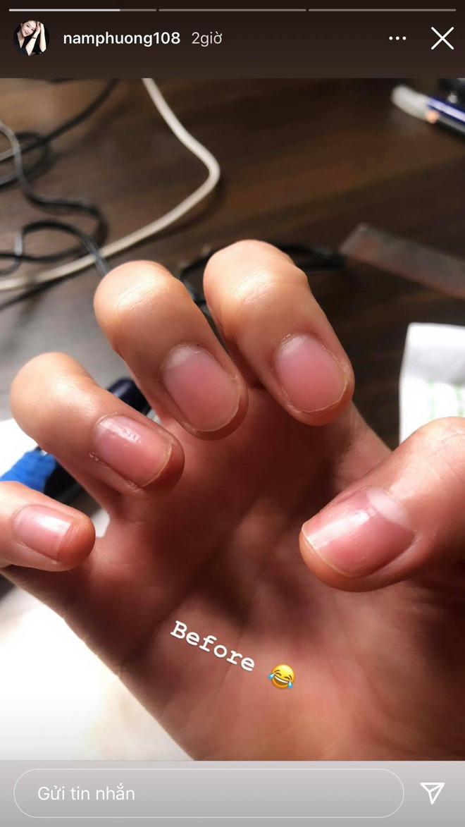 Đặc biệt, Nam Phương còn chịu khó so sánh "before - after" để thấy sự khác biệt của bàn tay nhờ bộ nail. Nhìn thôi là thấy Tết gần với cô nàng lắm rồi.