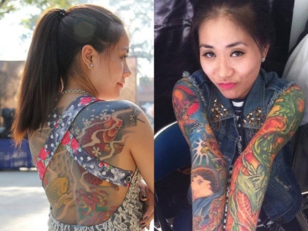 "Chúng tôi tiếp xúc thường xuyên với xăm nên đâm ra yêu nghề. Hiện tại, cả hai làm việc tại một tiệm xăm ở TP HCM. Ban đầu, bố mẹ tôi khá buồn khi thấy con cái xăm trổ đầy người. Bây giờ, người lớn dần có cái nhìn nhẹ nhàngthoáng hơn, bố mẹ không còn phàn nàn khi thấy chúng tôi lo làm ăn, có thu nhập từ chính đam mê”, cô bày tỏ.