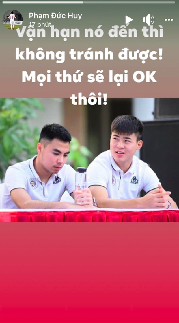 Giữa lúc tình trạng của Duy Mạnh đang nhận được nhiều sự quan tâm, "hoàng tử Ả Rập" Đức Huy cũng đăng tải lên trang cá nhân dòng trạng thái động viên tinh thần cậu em thân thiết. Chàng cầu thủ sinh năm 1995 nhắn nhủ: "Vận hạn nó đến thì không tránh được! Mọi thứ sẽ lại ok thôi". Động thái này của Đức Huy đã khiến người hâm mộ ấm lòng bởi cậu và Duy Mạnh không chỉ là đồng đội tại CLB Hà Nội và đội tuyển quốc gia mà còn là chiến hữu gắn bó với nhau suốt hơn 10 năm qua.