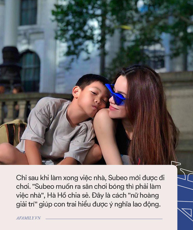 Dưới sự dạy dỗ của mẹ, Subeo biết làm từ những việc nhỏ nhất như tự tay dọn dẹp nhà cửa, đồ chơi của mình. Và chỉ sau khi xong những công việc đó, cậu nhóc mới được đi chơi. "Subeo muốn ra sân chơi bóng thì phải làm việc nhà", Hà Hồ chia sẻ.
