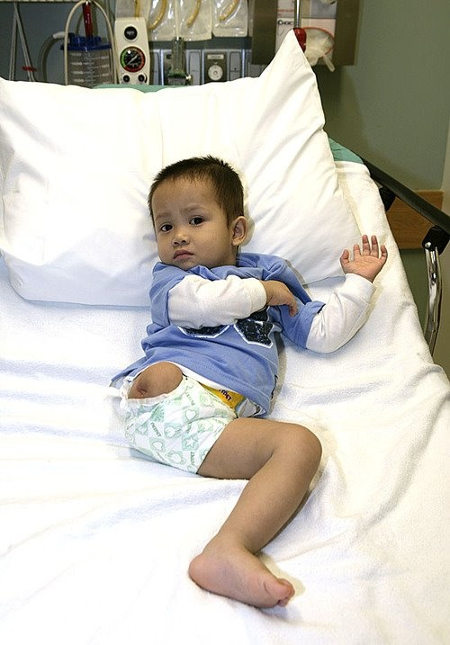 Trải qua nhiều cuộc phẫu thuật, Thiện Nhân đã có thể đứng vững trên đôi chân của mình.