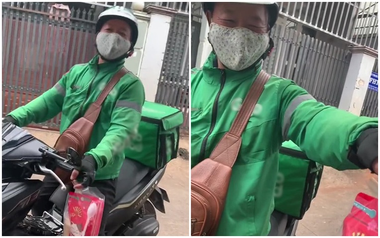 Theo đó một cô gái order trà sữa và người giao hàng không ai khác chính là bố cô: “Bố đi giao hàng gặp trúng con gái đặt trà sữa, hú hồn luôn” . Ngoài ra cô gái còn viết chú thích đính kèm khoảnh khắc này: "Lâu lâu đặt 1 bữa lại gặp trúng bố yêu của mình. Cảm ơn lúc nào cũng thấy bố vui vẻ".