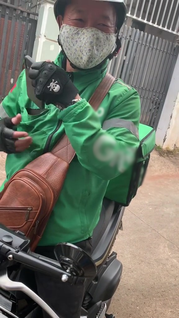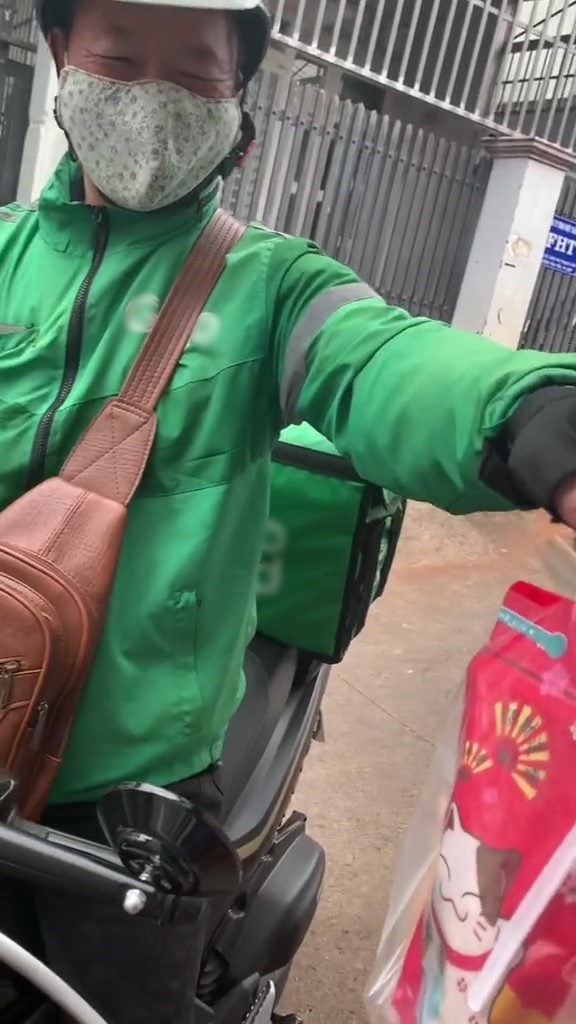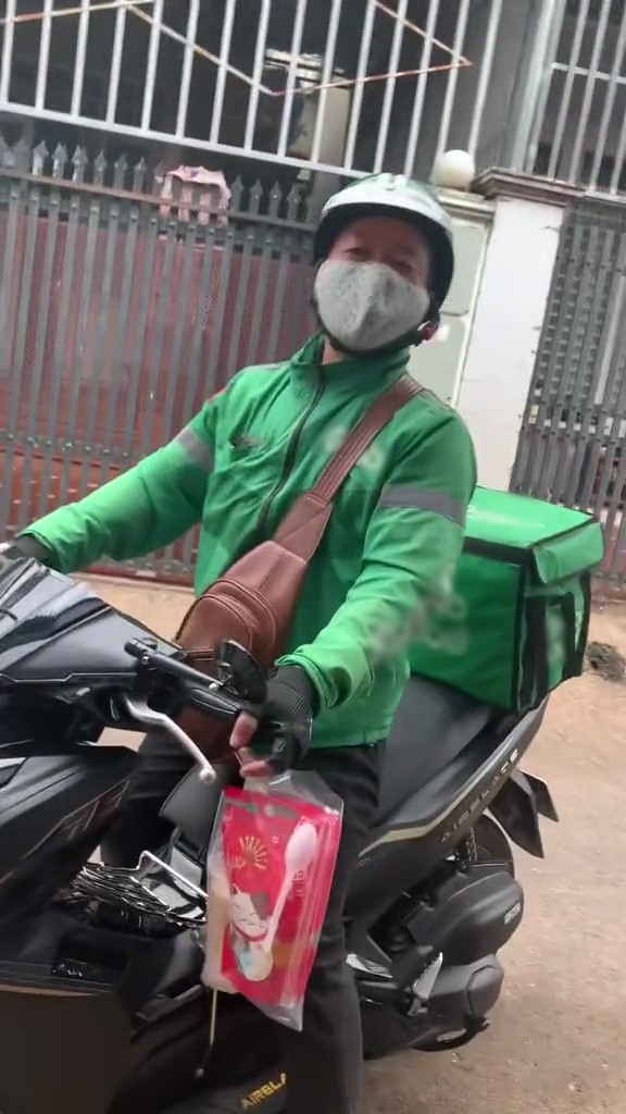 Đã theo dõi quá trình di chuyển của shipper từ trên app nên cô gái còn “thủ” sẵn điện thoại để ghi lại màn giao hàng đặc biệt này. Khi bố mang trà sữa đến, cô con gái nói đùa: “Đánh giá 1 sao nha. Đến đặt trà sữa mà còn bố giao nữa là sao?” . Về phần mình, người bố cười vui vẻ đưa trà sữa cho con gái rồi nhanh chóng rời đi.