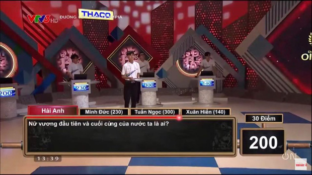 Câu hỏi có giá trị 30 điểm trên đã làm khó toàn bộ thí sinh tham gia cuộc đua. Trong khi nam sinh Hải Anh trả lời là Lý Chiêu Hoàng, những tưởng sẽ chắc chắn đúng nhưng MC của chương trình lại thông báo kết quả là sai. Tiếp đó, cậu bạn Tuấn Ngọc đang giữ vị trí nhất đoàn đua bấm chuông và giành quyền trả lời. Đáp án cậu bạn này đưa ra là Lý Chiêu Hoàng và Trưng Trắc. Tuy nhiên, đáp án vẫn không được chấp nhận.