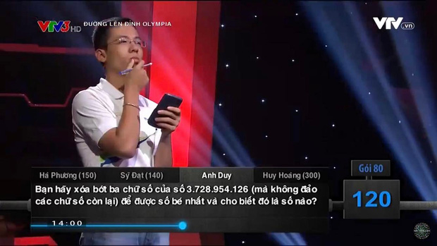 10/11/2021 22:32Câu hỏi Olympia tưởng dễ nhưng thí sinh 'tạch' ngay tức khắc: Xóa 3 chữ số nào trong số 3.728.954.126 để được số bé nhất?