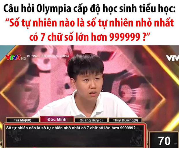 Theo đó, số tự nhiên cần tìm là con số 1.000.000. Đây là số tự nhiên nhỏ nhất có 7 chữ số, và tất nhiên nó phải lớn hơn số 999.999 vốn chỉ có 6 chữ số. Chính chi tiết này khiến thí sinh có đôi phần hoang mang và nếu bỏ hẳn ra, không đưa vào nội dung câu hỏi thì người chơi cũng có thể dễ dàng tìm ra đáp án.