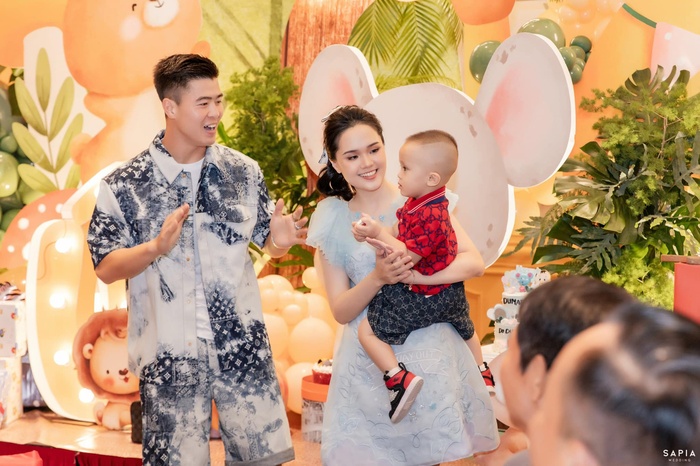 Tiệc sinh nhật của con trai Duy Mạnh được bày trí hoành tráng nhưng không kém phần ấm cúng