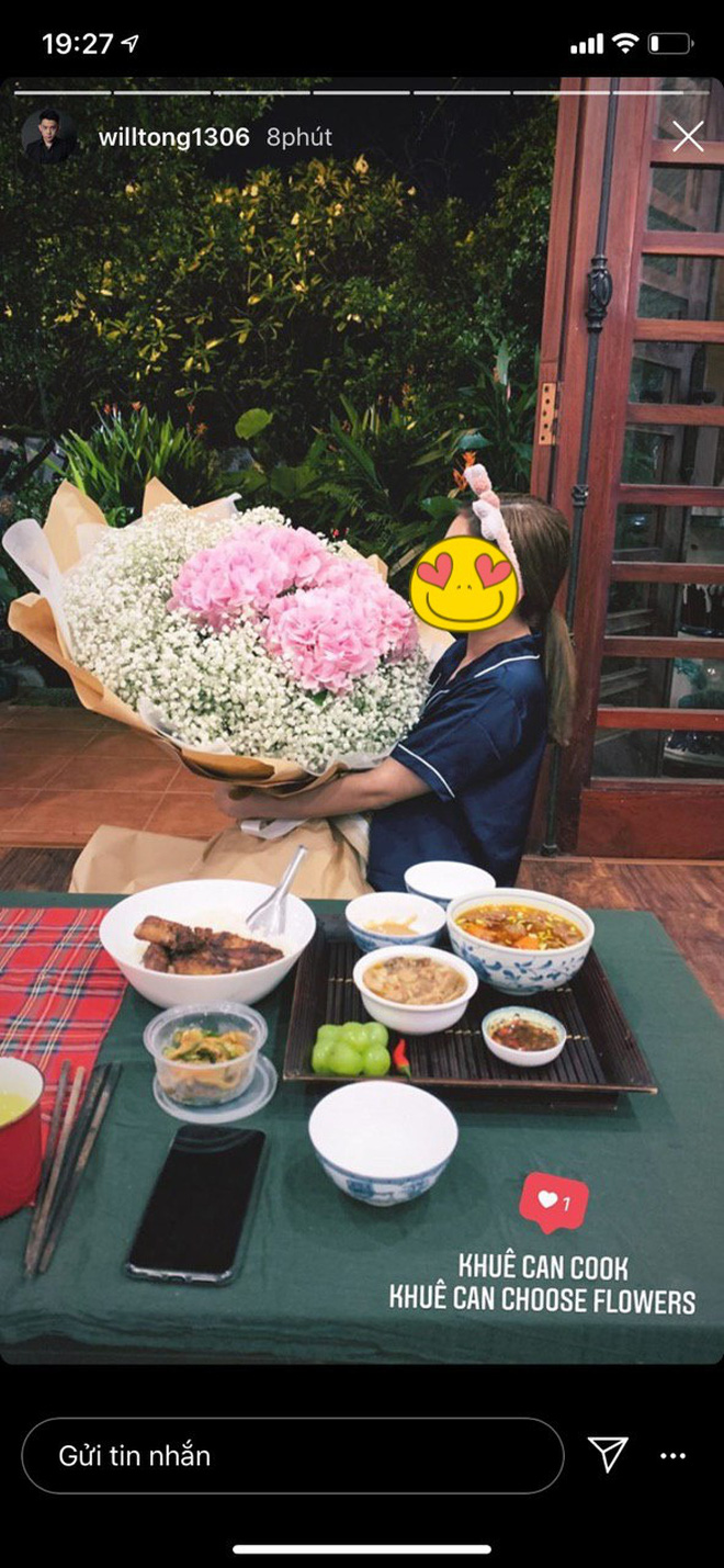 Mới đây trên Instagram, anh chàng đã đăng loạt story khoe mình vừa tự "lăn vào bếp" để làm đồ ăn ngon cho bạn gái. Ngoài ra để buổi tối thêm phần lãng mạn, chàng CEO cũng chuẩn bị một bó hoa siêu to tặng người yêu mình.