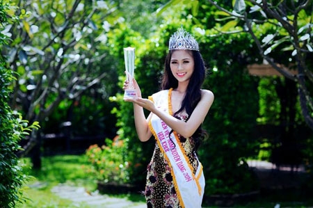 Xinh đẹp và tài năng, Phương Thảo đã thuyết phục ban giám khảo và khán giả khi đạt hoa khôi Nữ sinh viên Việt Nam duyên dáng 2014. Ảnh: Vuong Duong Nguyen. |
