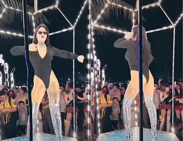 Theo một số đoạn clip lan truyền trên nền tảng TikTok, Ngân Baby diện trang phục kín trên hở dưới khoe trọn eo thon, vòng ba đầy đặn rồi nhảy múa trên bục quán bar tại bãi biển Hạ Long.