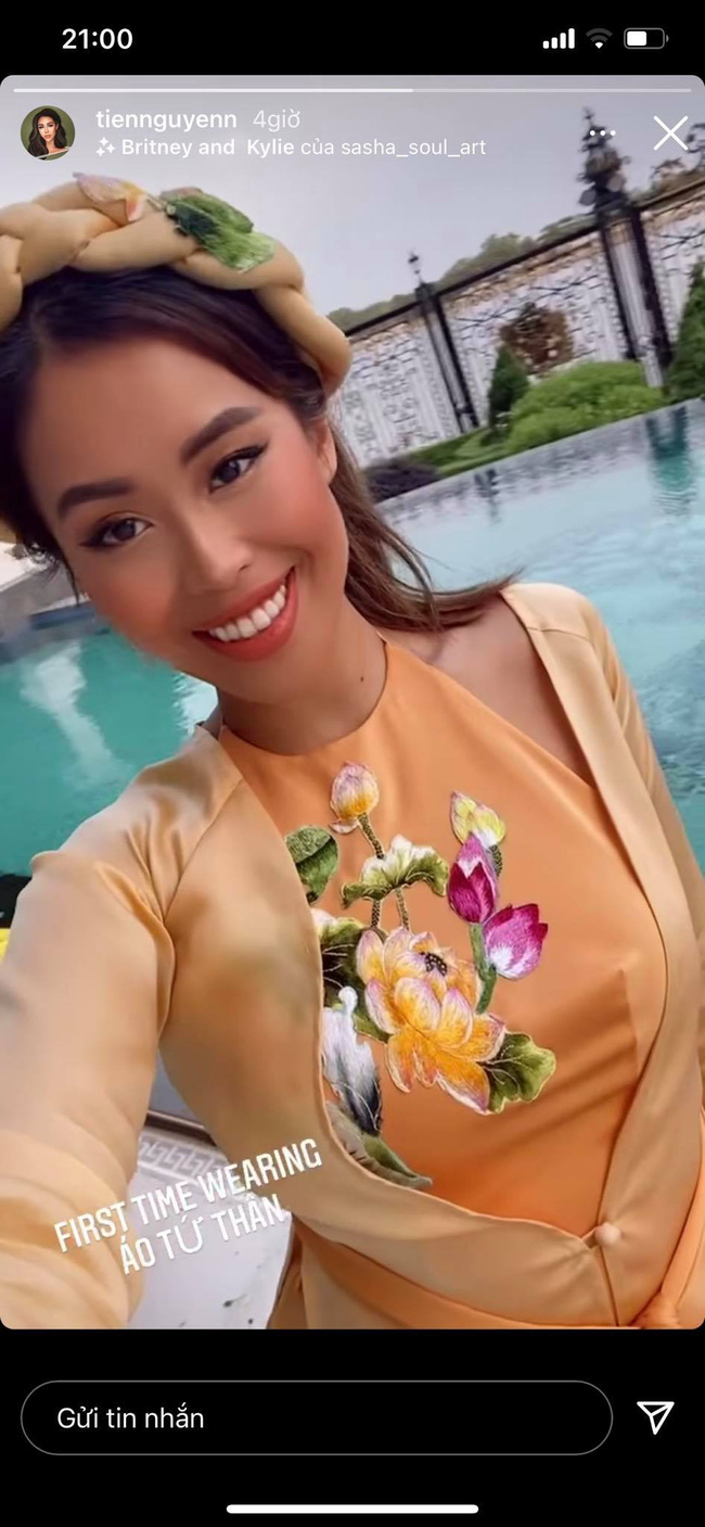 Thay vì diện áo dài, việc chọn cho mình một chiếc áo tứ thân làm dân tình vô cùng bất ngờ, khi Tiên Nguyễn mặc vừa đẹp, lại còn là một cách lưu giữ văn hoá truyền thống.