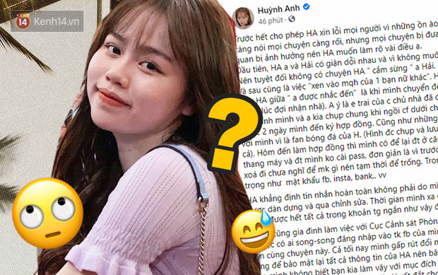 Sau khi sự việc ồn ào và ầm ĩ trên mạng, Huỳnh Anh đã nhanh chóng lên tiếng thanh minh trên trang cá nhân. Cô nàng khẳng định không có chuyện mình "cắm sừng" Quang Hải. Huỳnh Anh cho biết tin nhắn được cho là của cô nàng với Q. đều được dàn dựng. Tuy nhiên, lời giải thích của Huỳnh Anh có rất nhiều điểm bất hợp lý khiến dân tình vô cùng hoài nghi và ngờ vực. Sau đó, Huỳnh Anh còn xoá (hoặc ẩn) status này đi khiến nhiều người không khỏi tò mò.